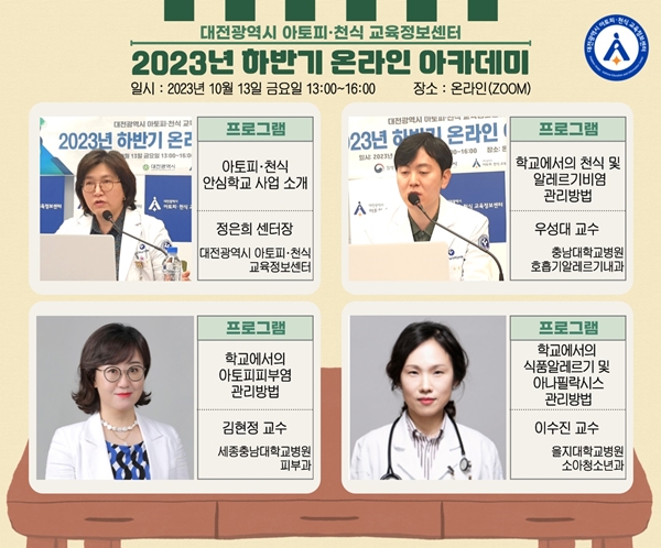 [충청뉴스 이성현 기자] 충남대병원 대전 아토피·천식 교육정보센터가 ‘2023년 하반기 아토피·천식 온라인 아카데미’를 열었다고 밝혔다.