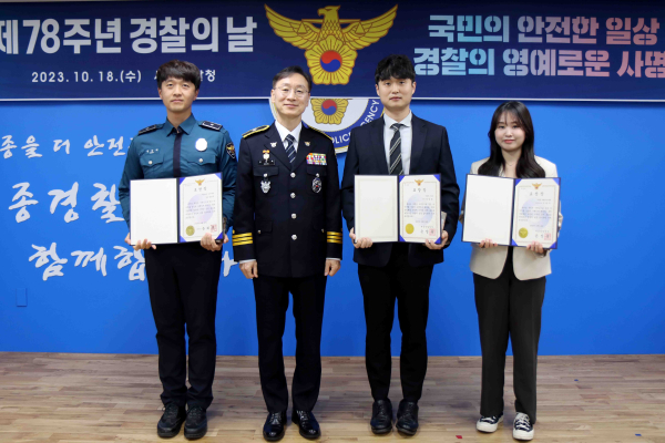 이 자리에서 경찰업무 발전에 기여한 공로를 인정받아 경무기획과 성민제 경위가 경찰청장 표창을, 수사과 강남호 경장과 생활안전교통과 이현지 행정관이 세종경찰청장 표창을 각각 수상했다.
