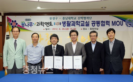 대전시 유성구(구청장 허태정)가 29일 구청 중회의실에서 꿈나무과학멘토 확대를 위해 충남대 산학협력단(강용)과 ‘꿈나무과학멘토-생활과학교실’ 공동협력 협약을 맺었다.