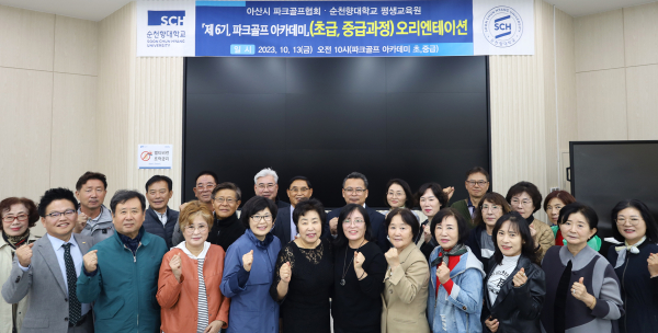 [충청뉴스 박동혁 기자] 순천향대학교는 20일 인문과학관에서 ‘제6기 파크골프 아카데미’ 초·중급과정 개강식과 오리엔테이션을 갖고 본격 운영에 들어갔다고 밝혔다.