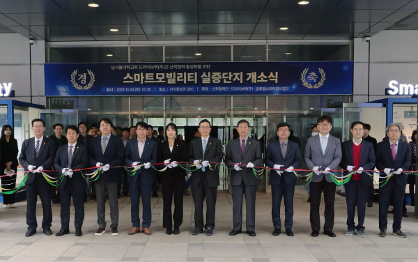 [충청뉴스 박동혁 기자] 남서울대학교는 24일 교내 지식정보관에서 미래형 모빌리티 분야 선도를 위한 ‘스마트모빌리티 실증단지’ 개소식을 개최했다고 밝혔다.