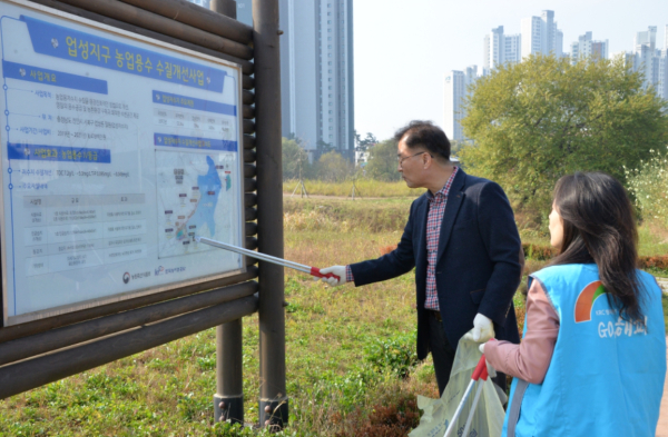 이날 행사는 공사 직원·천안시기자협회 소속 기자·충남동부보훈지청 직원이나 시민들 30여 명이 함께 업성저수지 일대의 버려진 쓰레기를 담으며 아름답고 깨끗한 농어촌을 만들기 위해 힘을 모았다.