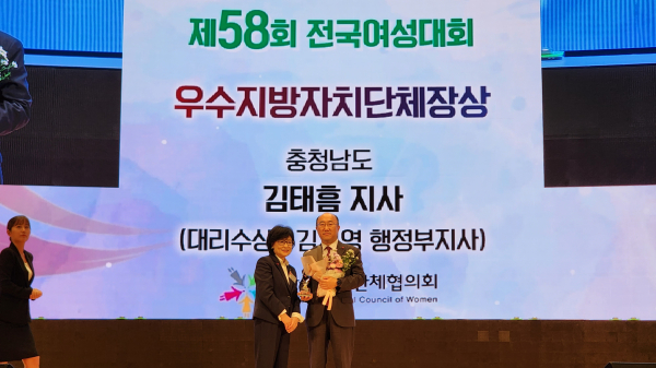 [충청뉴스 권상재 기자] 충남도는 1일 서울 코엑스에서 한국여성단체협의회 주최로 열린 ‘제58회 전국여성대회’에서 김태흠 지사가 우수지방자치단체장상 수상의 영예를 안았다고 밝혔다.
