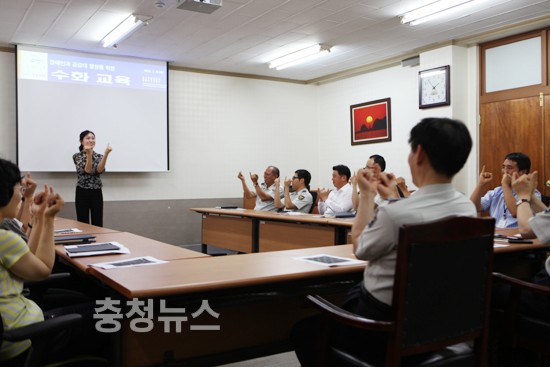 충남지방경찰청(청장 정용선)은, 청각장애인의 보호와 기반조성을 위해 소속 경찰관들에 대한 수화교육을 실시할 예정이라고 밝혔다.