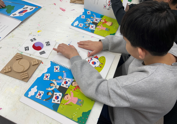 학생들은 태극기와 3·1운동을 주제로 ‘점·묵자 그림책 읽어보기’, ‘역사 속 태극기 촉각 자료 탐구하기’, ‘태극기 목판 찍어보기’ 등 다양한 활동에 참여했다.