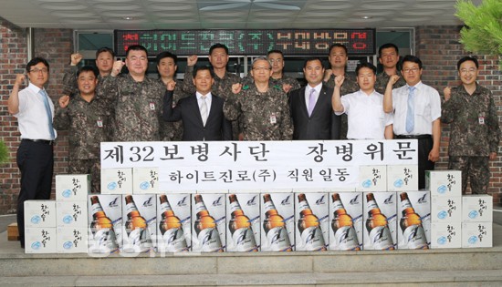 하이트진로(지점장 오양균)는 10일 공주시 반포면에 위치한 백룡부대(32사단장 김완태소장)를 방문해 지역의 향토방위를 위해 헌신하고 있는 백룡부대 장병들의 노고에 감사의 뜻을 전했다.