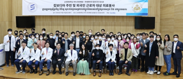 이번 의료봉사는 순천향대 중앙의료원과 주한 캄보디아 대사관과의 보건의료협력 업무협약의 하나로 추진됐으며, 올해 서울병원과 구미병원에 이어 세 번째로 실시됐다.