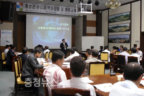 홍성군(군수 김석환)은 7월 12일과 13일 양일간 충북 제천의 청풍리조트에서 6급 이상 관리자 40여명이 참석한 가운데 '힘찬 도약, 희망 홍성' 건설을 위한 관리자 역량강화 및 청렴교육을 실시했다.