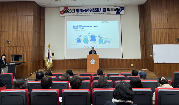 [충청뉴스 권상재 기자] 충남도는 15일 도 농업기술원 중강당에서 명예공중위생감시원 80명과 시군 공중위생 담당자 20여 명 등 100여 명을 대상으로 ‘2023년 명예공중위생감시원 직무교육’을 실시했다.