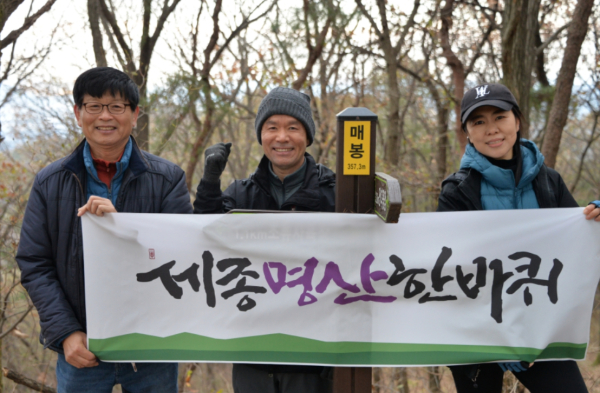 세종시 명산을 기행하는 모임(세종명산한바퀴)충청뉴스 최형순 본부장, 이은수 세종시립도서관장, 김순자 캘리그라파 작가는 열두 번째 산행지 청벽산과 매봉을 최근 찾았다. 금강자연휴양림 제1주차장에 주차를 하고 산행 준비를 한다.