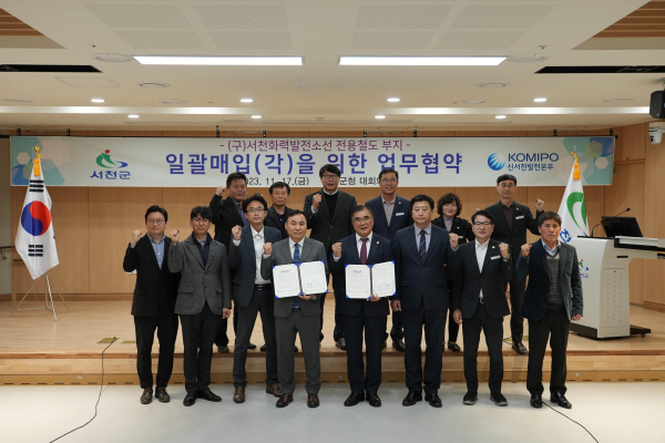 [충청뉴스 서천 = 조홍기 기자] 서천군과 한국중부발전이 17일 군청 대회의실에서 구 서천화력발전소선 전용철도 부지 일괄 매입·매각을 추진하기 위한 업무 협약식을 개최했다.