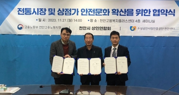 [충청뉴스 박동혁 기자] 소상공인시장진흥공단 천안센터와 고용노동부 천안지청, 천안시 상인연합회가 관내 전통시장·상점가 안전을 위해 나섰다.