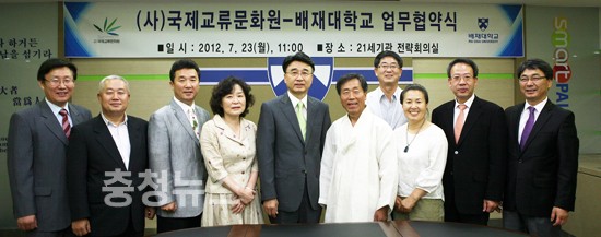 배재대학교(총장 김영호)와 (사)국제교류문화원(이사장 이종태)이 협력하여 해외 문화교류를 적극 나서기로 협약을 맺었다.