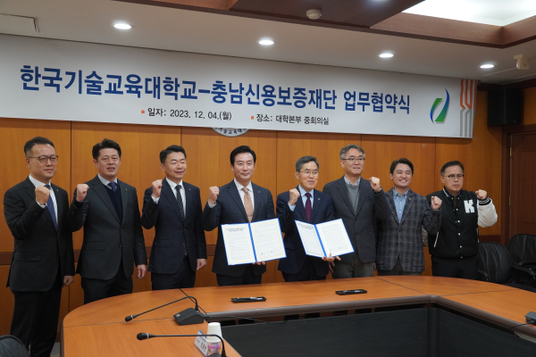 [충청뉴스 권상재 기자] 충남신용보증재단(이사장 김두중, 이하 충남신보)과 한국기술교육대학교(총장 유길상, 이하 한기대)는 지난 4일 한국기술교육대학교에서 산학협력 가족회사 및 창업기업 육성을 위한 업무협약을 체결했다.