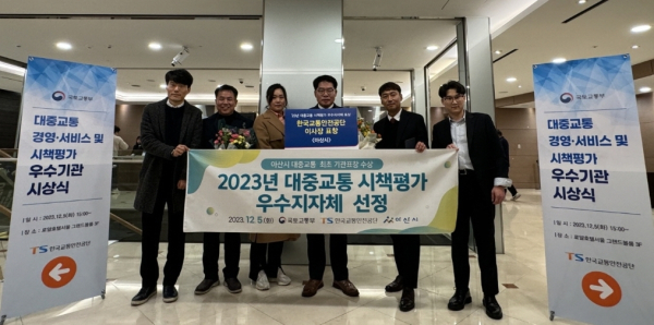 [충청뉴스 박동혁 기자] 충남 아산시는 지난 5일 로얄호텔서울에서 열린 ‘2023년 대중교통 경영·서비스 및 시책평가’ 시상식에서 시책평가 우수기관에 선정됐다고 밝혔다.