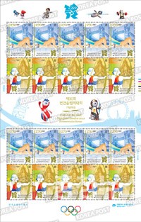 또한, 우표전지에는 런던올림픽 엠블럼과 함께 마스코트 ‘웬록’이 태권도, 축구, 수영, 역도를 하는 모습이 표현되어 있다.