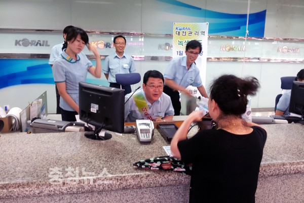 새누리당 박성효 국회의원(대전 대덕구)은 30일 오후 대전역에서 일일 명예역장으로 철도서비스를 체험하는 행사를 펼쳤다.