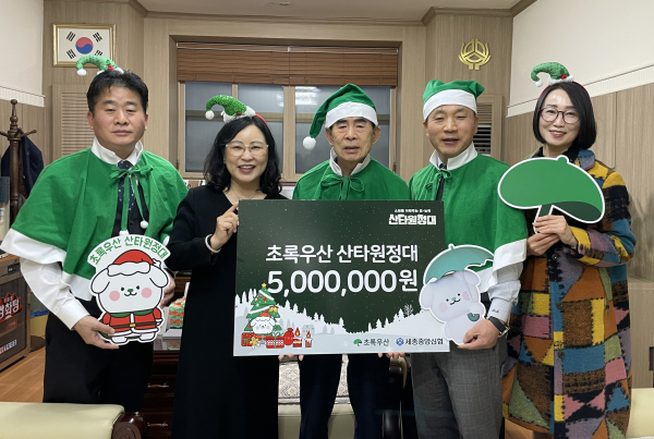 [충청뉴스 최형순 기자] 세종중앙신협(이사장 민병원)이 15일 초록우산 세종지역본부(본부장 박미애)에 ‘초록우산 산타원정대’ 후원금 500만원을 전달했다.
