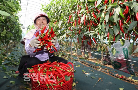 특히 비닐하우스와 터널을 이용, 무농약으로 키우는 친환경 고추는 최대 10번 가량 연이어 수확이 가능하고 노지에서 생산되는 친환경 고추는 5번 정도 수확할 수 있어 농가들의 고소득을 보장하고 있다.