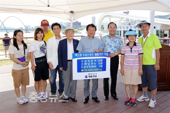 시는 4일 오후 대전 갑천 수상스포츠 체험장에서 염홍철 대전시장을 비롯해 이인구 계룡건설명예회장, 계룡건설임직원, 시 체육회 관계자 등 200여명이 참석한 가운데 수상스포츠 체험기구 기증식을 가졌다.