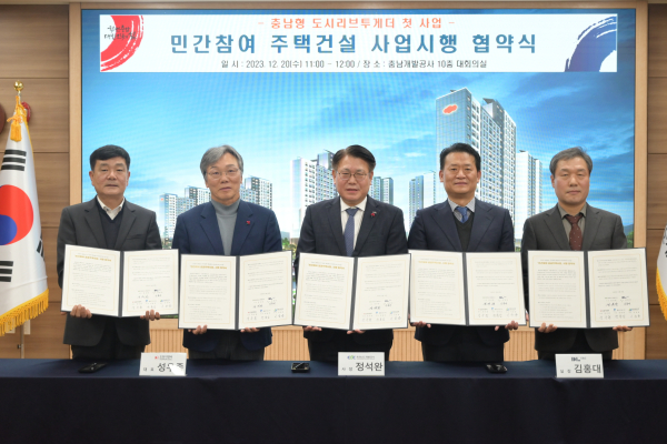 [충청뉴스 권상재 기자] 충남개발공사는 20일 ‘충남형 도시리브투게더 첫 사업‘ 의 우선협상대상자인 디엘이앤씨 컨소시엄과 민간참여 공공주택 사업시행 협약을 체결하고 본격적인 사업 시작을 알렸다.