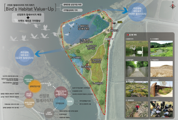 시는 선장포 노을공원 주변 생태 경관과 생물서식 기능이 훼손된 하천의 유휴부지(2만 6,000㎡) 습지를 개선하고 수서 생물원, 야생 초원, 억새군락지 등을 조성할 계획이다.
