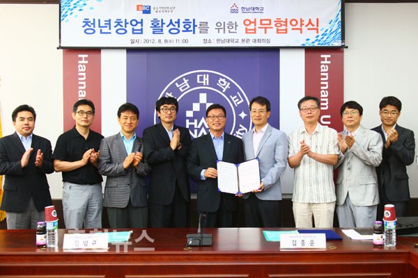 한남대학교 창업지원단(단장 김종운)은 8일 오전 본관 대회의실에서 중소기업진흥공단 대전지역본부와 청년창업 지원을 위한 업무협약을 체결했다고 밝혔다.