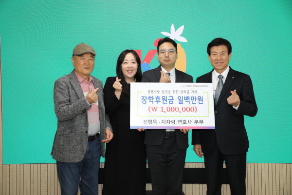 [충청뉴스 금산 = 조홍기 기자] 법률사무소 금산(대표 진형욱)은 지난 22일 금산군청을 방문해 인재육성을 위해 사용해 달라며 장학기금 100만 원을 금산교육사랑장학재단에 기탁했다.