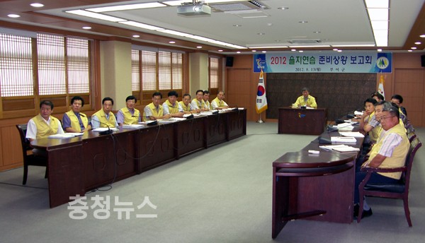부여군은 13일 오전 군청회의실에서 이용우 군수 주재로 산하 실과단소장 등 30여명이 참석한 가운데 2012 을지연습 실시에 따른 준비상황보고회를 개최했다.