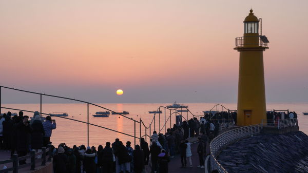 [충청뉴스 서천 = 조홍기 기자] 일몰과 일출을 한 곳에서 볼 수 있는 서해안의 대표적인 해넘이·해돋이 명소인 서천군 서면 마량진항에 2일간 3만여 명의 많은 인파가 몰리며 북새통을 이뤘다.