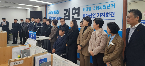 이날 회견에는 김길자·김명숙·김미화·박종갑·배성민·복아영·엄소영·유영채·육종영·이병하·이종담 천안시의원, 정병인 충남도의원, 이공휘·정병기 전 충남도의원, 김영수 민주당 충남도당 청년위원장 등이 참석해 김 예비후보를 응원했다.