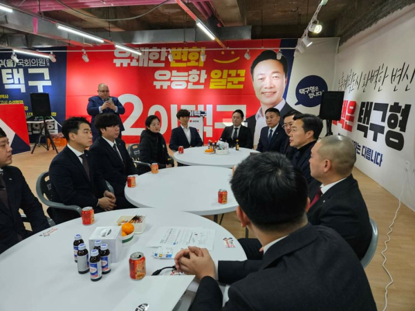 이택구 국민의힘 서구을 국회의원 예비후보는 지난 6일 갈마동 선거캠프 사무실에서 JCI(사단법인 청년회의소) 회장단·임원들과 간담회를 개최했다. (사진 제공=이택구 예비후보 선거캠프)