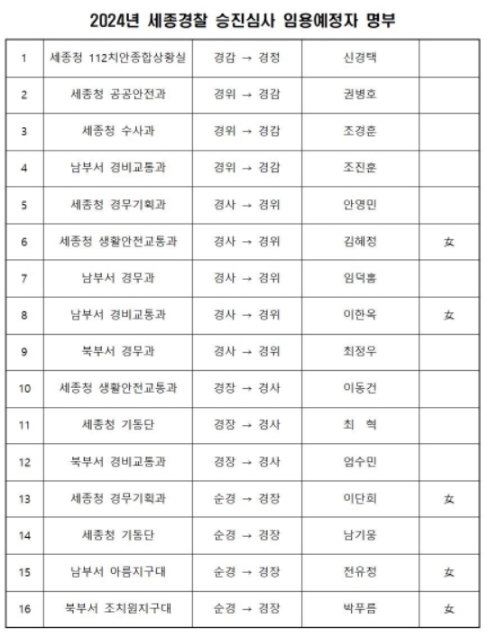 [충청뉴스 최형순 기자] 2024년 세종경찰청 승진심사 임용예정자 저작권자 © 충청뉴스 무단전재 및 재배포 금지 최형순 기자 다른기사 보기 기사가 마음에 드셨나요? 충청뉴스 좋은 기사 후원하기 1,000원 3,000원 5,000원 10,000원 30,000원 50,000원 직접입력 비회원 약관동의하기 ※ 소중한 후원금은 더 좋은 기사를 만드는데 쓰겠습니다.