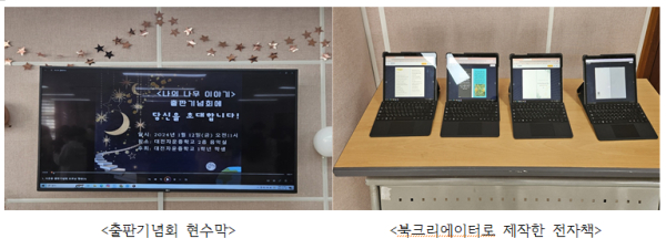 1학년 학생들은 학교 정원에 있는 나무 중 하나를 선택하여 사계절의 흐름에 따른 나무의 성장을 관찰하고, 교감하며, 자신의 감정을 표현한 음악을 작곡하는 등 1년간 활동한 결과를 모아 한글과 영어 버전의 2종류의 전자책을 제작하였다. 전자책 제작 과정에는 클래스룸, 캔바, 북크리에이터, 패들렛, 송라이터, 오토드로우, 생성형 AI 등의 다양한 도구들이 사용되었고, 학생들은 자연스럽게 이러한 도구의 사용법을 익힐 수 있었다.