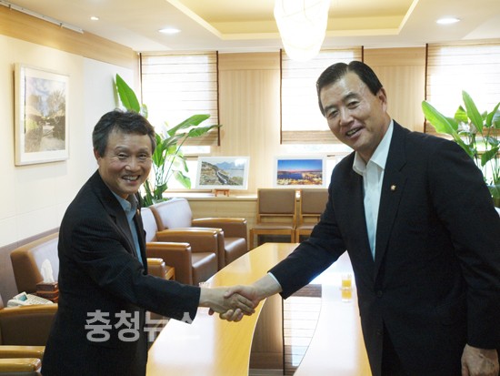▲ 홍문표 의원이 권도엽 국토부장관을 만나 수도권 전철 예산홍성(도청신도시)까지 연장 추진 논의
