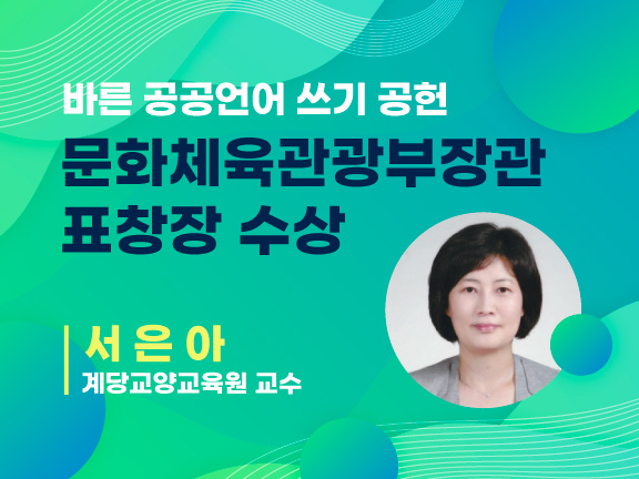 [충청뉴스 박동혁 기자] 상명대학교는 계당교양교육원 소속 서은아 교수가 공공언어를 개선한 공로로 문화체육관광부 장관상을 받았다고 18일 밝혔다.