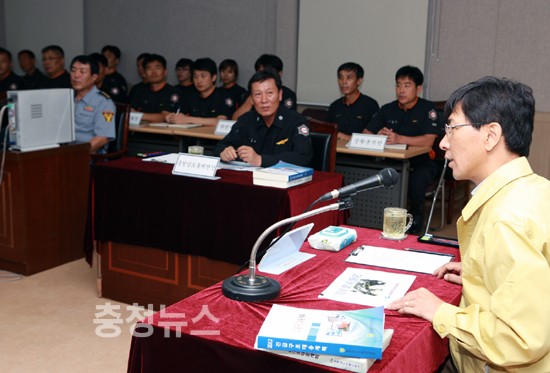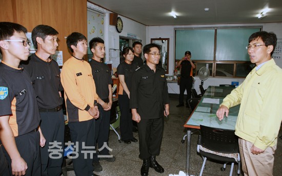 ▲ 안희정 지사가 보령소방서에서 제15호 태풍 볼라벤 관련 상황보고를 받고 있다.