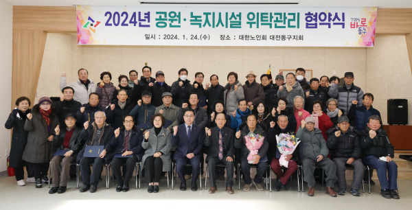 [충청뉴스 박영환 기자] 대전 동구(구청장 박희조)는 24일 대한노인회 동구지회에서 경로당, 새마을협의회 등 56개 단체와 공원‧녹지시설 56곳에 대한 위탁관리 협약을 체결했다.