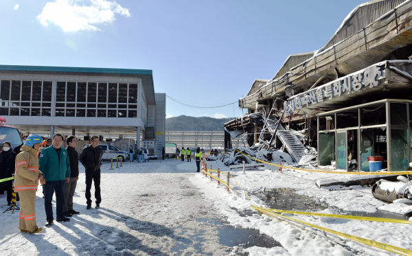 충남도의회 조길연 의장이 서천 화재 현장을 방문했다