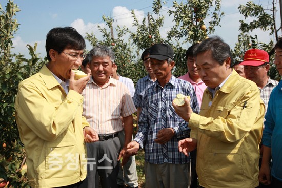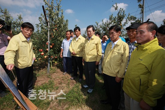 29일 당진 과수농가 및 태안 어선대피 현장 등 안희정 충남지사는 29일 맹형규 행정안전부 장관과 함께 당진과 태안 등 충남 서북부 태풍피해 지역을 방문했다. ▲ 29일 오후 안희정지사와 맹형규행정안전부 장관이 태풍피해 당진 순성면 과수 농장 현장 방문했다. ▲ 29일 오후 안희정지사와 맹형규행정안전부 장관이 태풍피해 당진 순성면 과수 농장 현장 방문했다. 안 지사와 맹 장관은 이날 당진시 순성면 과수 피해 농가를 방문해 피해주민을 위로한 뒤 태안 안흥항 어선대피 현장에 들러 제14호 태풍 ‘덴빈’ 북상에 따른 대비상황 등을 점검했다. 저작권자 © 충청뉴스 무단전재 및 재배포 금지 문요나 기자 다른기사 보기 기사가 마음에 드셨나요? 충청뉴스 좋은 기사 후원하기 1,000원 3,000원 5,000원 10,000원 30,000원 50,000원 직접입력 비회원 약관동의하기 ※ 소중한 후원금은 더 좋은 기사를 만드는데 쓰겠습니다.