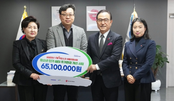 이번 후원금은 삼성전자 임직원들이 ‘나눔 키오스크 아동 지원사업’을 통해 모금했다. 청소년쉼터의 노후화된 환경개선에 사용될 예정이다.