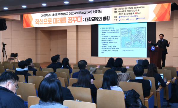 [충청뉴스 박동혁 기자] 백석대학교는 30일 교내 지혜관에서 ‘혁신으로 미래를 꿈꾸다 : 대학 교육의 방향’을 주제로 ‘제4회 GE(Good Education) 콘퍼런스’를 열었다고 밝혔다.