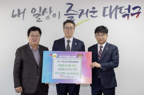 [충청뉴스 박영환 기자] 대전 대덕구(구청장 최충규)는 3H 지압침대 대전송촌센터(센터장 김영록)로부터 자원봉사 활동에 필요한 자원봉사자 조끼 120벌(324만원 상당)을 전달 받았다고 밝혔다.