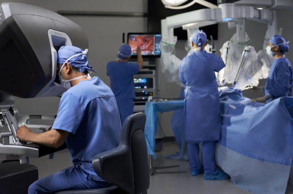 의사는 자동화 로봇 수술 시스템을 통해 별도의 조작 콘솔에서 고화질 입체 영상을 보며 로봇 팔을 조종해 수술할 수 있다.