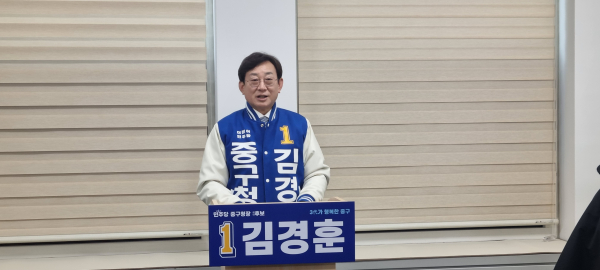 그러면서 “중구 구민 여러분이 성원하고 지지해 주시면 중구는 변화와 도약의 봄바람이 불어올 수 있다. 제 온몸을 던져 ‘변화와 도약의 중심, 새로운 중구 시대’를 열겠다”며 “이번 재선거에서 중구를 바꾸는 새로운 힘! 김경훈을 응원해 주시길 부탁드린다”고 호소했다.