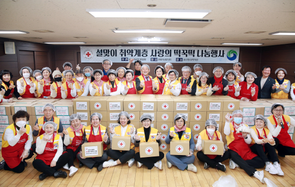 이번 행사는 구청 다목적실에서 적십자 회원 40여 명이 참여한 가운데, 떡국떡(450kg)과 라면, 사골국물 등을 회원들이 손수 포장해 관내 홀몸 어르신, 한부모 가정 등 취약계층 450가구에 따뜻한 마음과 함께 전달했다.