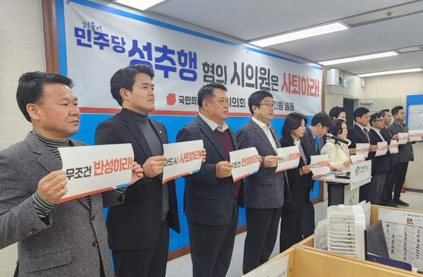 [충청뉴스 박동혁 기자] 국민의힘 소속 천안시의회 의원들이 동료 여성 의원을 성추행한 혐의로 고소된 더불어민주당 소속 남성 A 의원을 향해 의원직 사퇴와 공개 사과를 촉구했다.