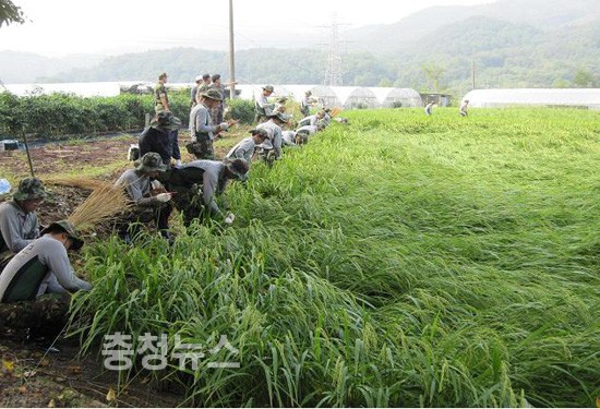 3일, 정생동 농가에서 505여대 군장병과 함께 구슬땀 흘려