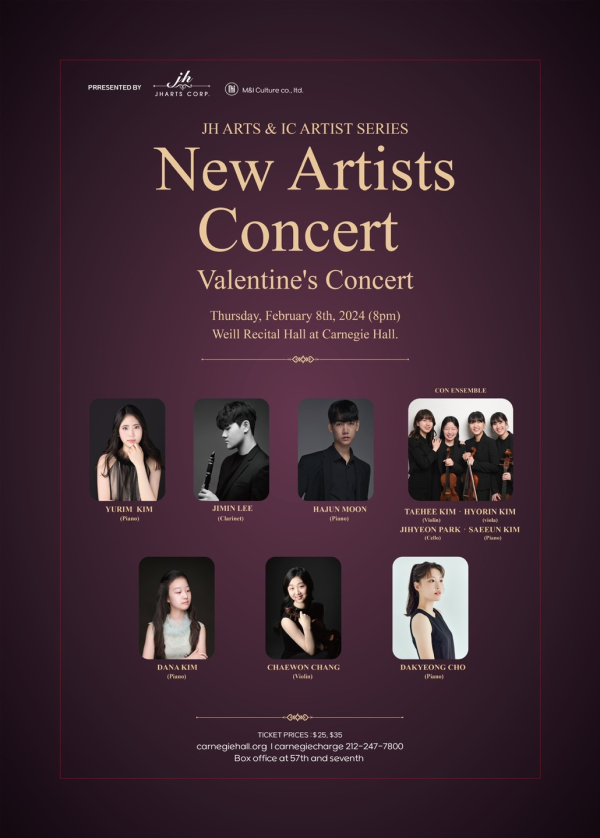 한편 New Artists Concert는 JH Arts Corporation이 주최하고 International Connection이 주관하는 JH Arts & IC의 아티스트 시리즈로 열린다.