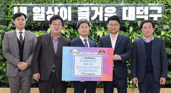 [충청뉴스 박영환 기자] 대전 대덕구(구청장 최충규)는 으뜸새마을금고(이사장 이희각)로부터 지역의 어려운 이웃을 위한 물품을 기탁받았다고 밝혔다.